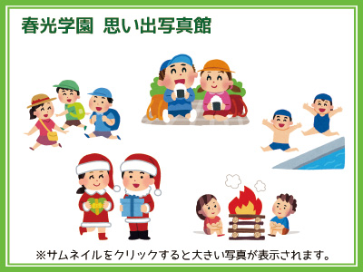春光学園では、地域の人たちとの交流や子どもたちが楽しめるさまざまな行事が、年間を通して行われています。思い出の写真を掲載しましたので、ぜひご覧下さい。